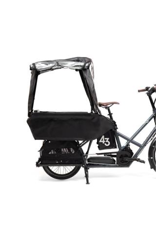 Afin de pouvoir sortir notre bécane par tous les temps, nous allons installer cette tente de pluie pour que les enfants soient bien à l'abris !