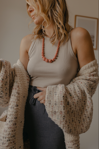 Le collier d'allaitement Terracotta ravira toutes les jeunes mamans par son côté esthétique et pratique. Une idée de cadeau de naissance originale.