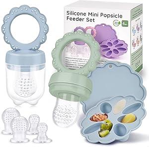 JONRRYIN Tétine à fruits pour bébé, avec récipient de rangement pour aliments pour bébé et 6 tétines en silicone, en 3 tailles, pour les tout-petits de 3 à 24 mois, sans BPA