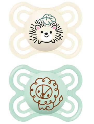 Lot de 2 tétines MAM Perfect 2-6 mois, motifs lion et hérisson