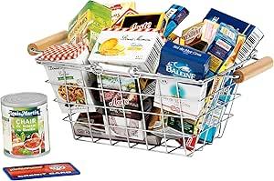 Theo Klein 7202 Panier à provisions en métal garni avec double anse - Livré avec de nombreuses boîtes factices en français et avec des marques connues - Pour les enfants à partir de 3 ans : Amazon.fr: Jeux et Jouets