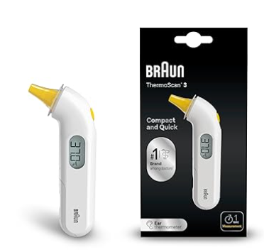 Braun ThermoScan 3 Thermomètre auriculaire (précision professionnelle, simple, indicateur sonore de fièvre, hygiénique, rapide, tous les membres de la famille; nouveau-nés)