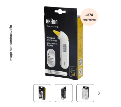 en toute liberté. Il est possible d'ajouter toutes vos envies cadeaux et de recevoir les dons directement sur votre compte. Avec les dons reçus, vous êtes alors libre d'aller acheter vos produits (comme ce 'Thermomètre auriculaire compact ThermoScan® 3 de Braun 1 pc(s) - Farmaline