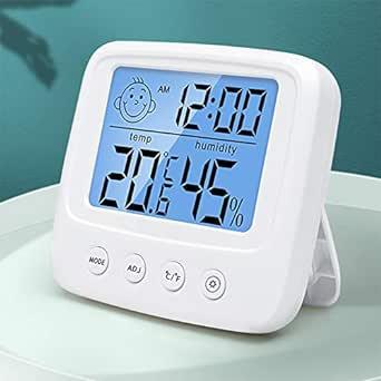 Thermomètre Hygromètre Intérieur Digital à Haute Précision, Moniteur de Température et Humidimètre, Thermo Hygromètre Indicateur du Niveau de Confort avec rétroéclairage, horloge et fonction ℃ / ℉