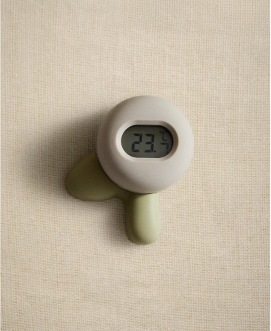 Thermomètre en silicone pour bébé avec un motif de fleur.