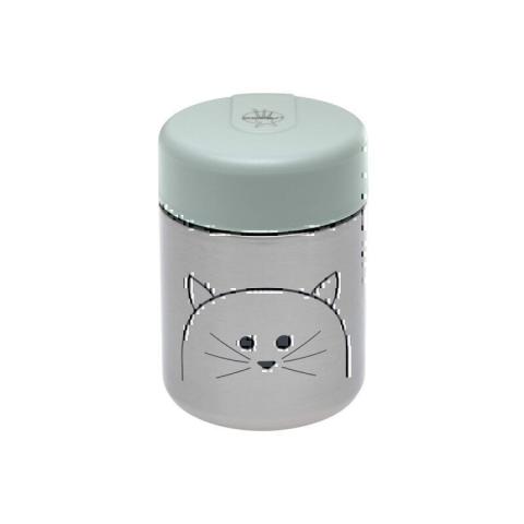 Thermos Little Chums chat en acier inoxydable pour conserver le repas de bébé au chaud ou au froid.