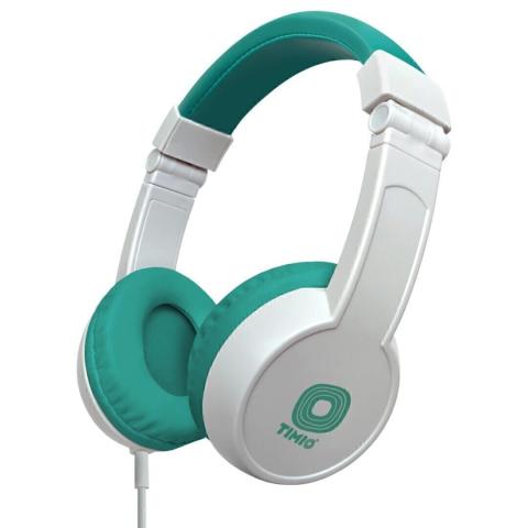 Een opvouwbare hoofdtelefoon voor kinderen van het merk TIMIO, als aanvulling op de audiospeler.