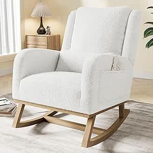 TIMORWTF Rocking Chair,Living Room Rocking Chair Interieur,Chaise à Bascule avec Coussin Lombaire,Fauteuil Allaitement en Velours Teddy avec Pieds en Bois Massif,Blanc (Blanc-C) : Amazon.com.be: Cuisine et maison