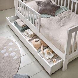 Tiroir sur roulettes adapté au lit enfant "Vivien", lit "Plume" et au Lit bébé évolutif Petite Amélie 70 x 140 cm.Une jolie allure pour votre lit bébé ou à votre lit enfant et une solution de rangement idéale.