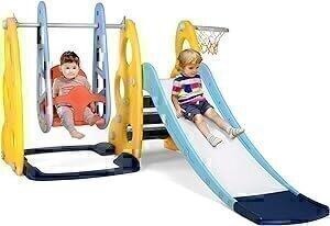Toboggan et Balançoire, 3 en 1 Toboggan pour Enfants, avec Balançoire & Panier de Basketball, 150cm Toboggan Extra Long, Idéal pour Jouer Extérieur/Intérieur, Charge Max 60kg : Amazon.com.be: Jouets