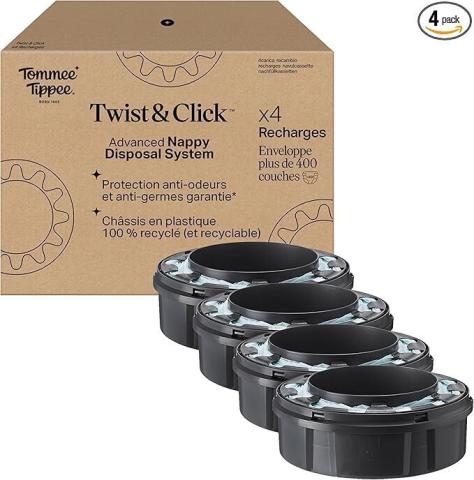 Tommee Tippee Original Twist & Click Nappy Bin Refills, Exclusive Pack of 4, Quick Refill and Economy Pack (Packaging May Vary) : Amazon.fr: Baby Products