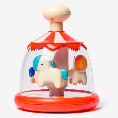 La toupie Manège des Tout-Petits émerveille les tout-petits dès 18 mois avec son mouvement fluide et ses couleurs vives. En appuyant sur le bouton supérieur, la toupie s'anime comme un petit manège, captivant les yeux et éveillant la curiosité. Idéale pour développer la coordination œil-main, elle stimule aussi la compréhension de la cause à effet. Sa base stable et sa prise facile en font un jouet parfait pour les premières manipulations en toute autonomie.