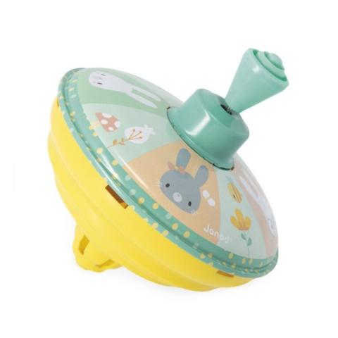 Une petite toupie à piston pour les enfants dès 12 mois dans la collection "Pure" de la marque Janod aux couleurs pastels.