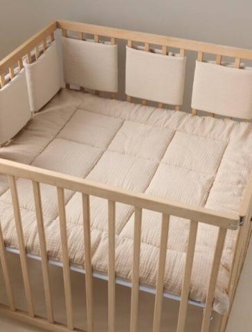 Un tour de lit qui protège bébé des barreaux du lit et lui offre un cocon douillet. En gaze 100% coton, il est tout doux et confortable.