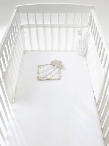 Réalisé avec une maille filet favorisant la circulation de l'air et un contour imprimé d'une pluie d'étoiles filantes, ce tour de lit respirant assurera à votre enfant des nuits paisibles et sécurisées.