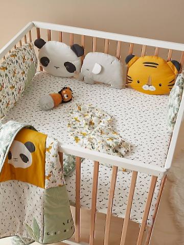 A la fois déco, confortable et anti choc, le tour de lit / tour de parc rassure les enfants en les entourant de douceur et en reproduisant le cocon de la maternité. Bébé pourra s’éveiller en toute sécurité, sans ris