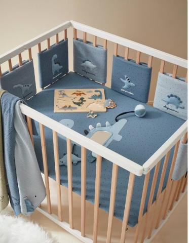 Ce produit est extrait d'une liste de naissance déposée sur Kadolog. Kadolog permet de créer des listes de naissance en toute liberté. Il est possible d'ajouter toutes vos envies cadeaux et de recevoir les dons directement sur votre compte. Avec les dons reçus, vous êtes alors libre d'aller acheter vos produits (comme ce 'Tour de lit / tour de parc pare-chocs PETIT DINO ') où et quand vous le souhaitez.