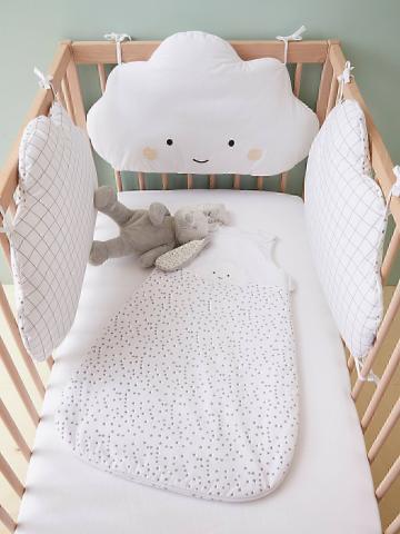 A la fois déco, confortable et anti choc, le tour de lit / tour de parc rassure les enfants en les entourant de douceur et en reproduisant le cocon de la maternité. Bébé pourra s’éveiller en toute sécurité, sans ris