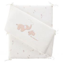 Le tour de lit Veloudoux - Bali, Moka & Snow de Noukies crée une barrière souple autour du lit de votre bébé, le protégeant des chocs contre les barreaux