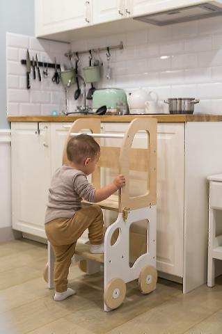 Cette tour est un formidable outil pour impliquer nos enfants dans les tâches quotidiennes mais aussi pour servir de support à leurs activités.