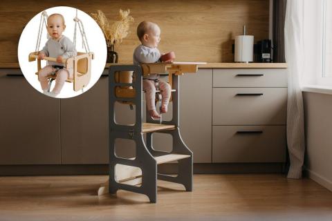 La tour pliable en bois pour tout-petits Montessori 5-en-1 se transforme en bureau/chaise pour enfants, chaise haute et balançoires, tour pour enfants, tour transformable