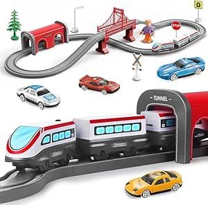 BASAMOU Train Électrique Enfant 3 4 5 6 7 8 Ans, Rouge Train Circuit Voiture Électrique Enfant, Jouet Véhicules Piste de Course, Jeux Piste Voitures Course, Garçon Fille Cadeau Noël (67PCS) : Amazon.com.be: Jouets