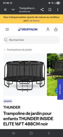 Ce produit est extrait d'une liste de cadeaux (Anniversaire, Noël, ...) déposée sur Kadolog. Kadolog permet de créer des listes de cadeaux (Anniversaire, Noël, ...) en toute liberté. Il est possible d'ajouter toutes vos envies cadeaux et de recevoir les dons directement sur votre compte. Avec les dons reçus, vous êtes alors libre d'aller acheter vos produits (comme ce 'Trampoline ') où et quand vous le souhaitez.