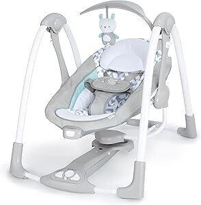 Balancelle électrique pour bébé. Elle offre cinq vitesses de bercement, huit mélodies et trois sons naturels