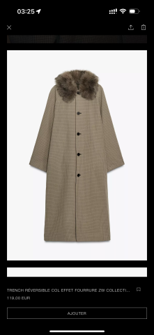 Ce produit est extrait d'une liste de cadeaux (Anniversaire, Noël, ...) déposée sur Kadolog. Kadolog permet de créer des listes de cadeaux (Anniversaire, Noël, ...) en toute liberté. Il est possible d'ajouter toutes vos envies cadeaux et de recevoir les dons directement sur votre compte. Avec les dons reçus, vous êtes alors libre d'aller acheter vos produits (comme ce 'Trench reversible ') où et quand vous le souhaitez.