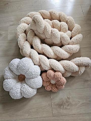 Tresse de lit en « moumoute » en couleur écru faite sur mesure par une boutique en ligne en France que nous adorons 🥰🌸