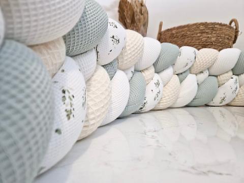 Tresse de lit bébé tons neutres 100% faite à la main en Belgique et 100% coton Oeko-Tex. Créez la tresse de lit parfaite ! Livraison en Europe.