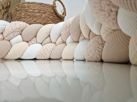 Tresse de parc bébé tons neutres 100% faite à la main en Belgique et 100% coton Oeko-Tex.