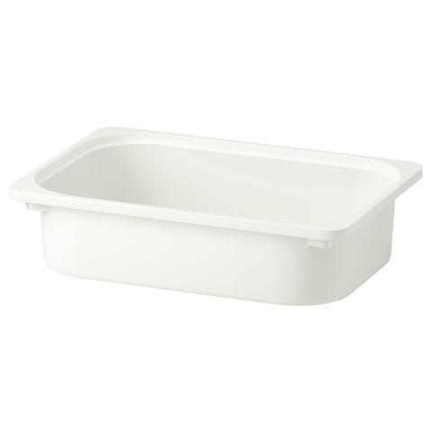 TROFAST bac, blanc, 42x30x10 cm Ce bac bas est pratique pour ranger des craies, des briques de jeu ou des puzzles. Il est en plastique résistant dont 50 % est recyclé. Convient aux structures TROFAST mais les bacs peuvent aussi être empilés si vous ajoutez un couvercle.