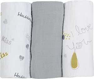 Trois Kilos Sept - Lot de 3 Langes bébé - Carrés de Mousseline Coton 70x70cm - Multi-usages: Couverture, Doudou, Bavoir, Protection Solaire - Certificié Oeko-tex - Motif I Love You : Amazon.fr: Bébé et Puériculture