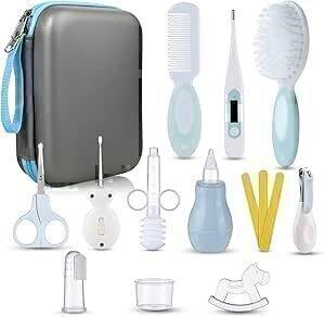 Lictin 15pcs Trousse de Soin Bébé Naissance Set de Toilette Bébé Confort sans BPA non Toxique Thermomètre/Lime à Ongles/Cuillère à Oreille et D'autres Accessoires pour Le Voyage/à la Maison