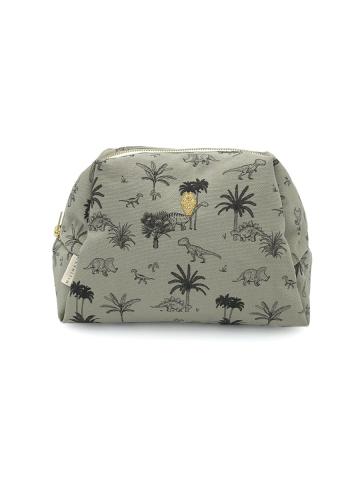 Découvrez l'imprimé Baby T-Rex sur la trousse de toilette en coton. Aussi mignonne qu'originale elle est parfaite pour ranger tous les soins de bébé.
