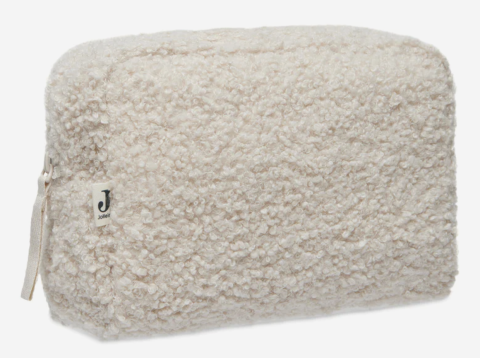 La pochette est fabriquée en peluche bouclée et est donc très douce. Il y a un porte-nom à l’intérieur.