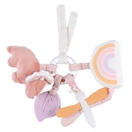 Le trousseau d'activités multicolore en Veloudoux de la collection Popsie, Gigi & Louli de Noukie's propose une variété d'activités captivantes pour éveiller les sens de votre petit chéri.