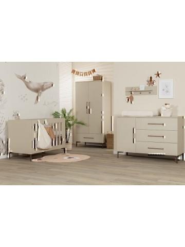 Découvrez le lit évolutif TWF - commode - armoire suspendue XL Salerno Metal. Une chambre d'enfant élégante et complète avec un espace de rangement supplémentaire ! Garantie du prix le plus bas