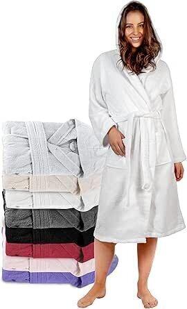 Twinzen Peignoir de Bain Femme - M - Blanc - 100% Coton avec Capuche - Certifié OEKO-TEX® - Robe de Chambre Eponge 2 Poches, Ceinture - Doux, Absorbant et Confort : Amazon.fr: Mode