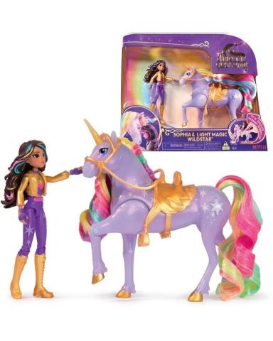 UNICORN ACADEMY SOPHIA&WILDSTAR LUMIERE La licorne illumine le sol de ses pouvoirs magiques avec une lumière arc-en-ciel. Utilise la brosse pour lui faire d...