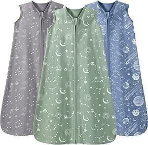 Unnivoll Gigoteuse Bébé 100% Coton Gigoteuse Été Tog 0.5 Gigoteuse 0-6 Mois Lot de 3 Sac de Couchage sans Manches pour Bébé Turbulette Été Légère pour Garçons Filles Constellation Verte Grise : Amazon.fr: Bébé et Puériculture