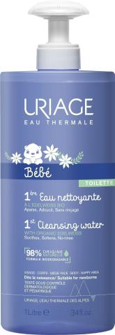 Eau nettoyante sans rinçage pour l'hygiène quotidienne du bébé. Nettoie la peau tout en douceur et élimine la saleté en apaisant et protégeant la peau.