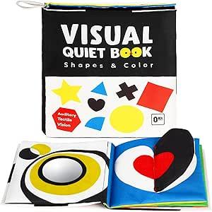 Jouets sensoriels à contraste élevé Ce livre d'activités pour bébé d'URMYWO présente un design noir et blanc à contraste élevé avec 6 couleurs différentes à contraste élevé, 9 motifs uniques et un miroir pour bébé. Il stimule le développement visuel de votre bébé et améliore sa perception des couleurs et sa motricité fine.