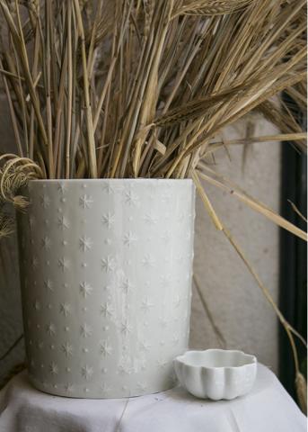 Un beau vase en porcelaine blanche de Limoges, fait à la main, pour mettre les fleurs que Foucauld offrira à Diane.
