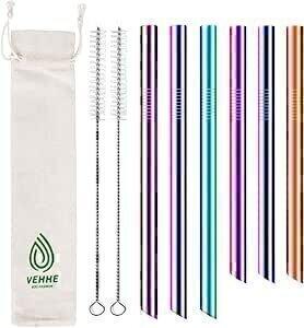 VEHHE Pailles Bubble Tea Réutilisables, Lot de 6 Pailles 24cm/21cm Acier Inoxydable, Pailles Extra Larges en Métal 12mm avec 2 Brosses de Nettoyage, Idéal pour Smoothie, Boba et Bubble Tea Pearls : Amazon.fr: Cuisine et Maison