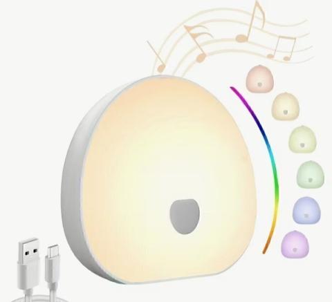 Lumière chaude, couleurs réglables, sons apaisants et commande tactile — parfaite pour créer une ambiance cocooning et favoriser l’endormissement.