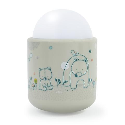 Veilleuse bébé nomade beige dans les bois Pabobo, sans pile ni fil, jusqu'à 70 heures d'autonomie.