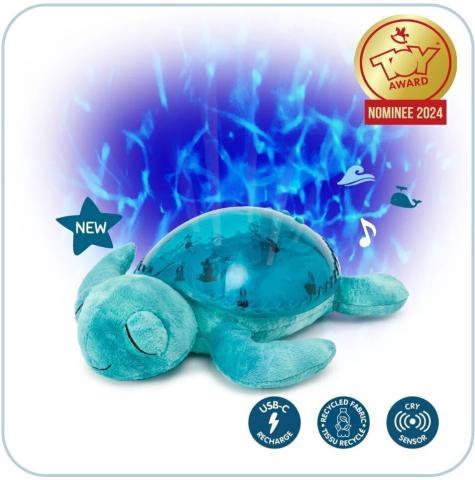 La veilleuse tortue Tranquil Turtle, aidera votre enfant à voyager au pays des rêves et s'endormir tout en douceur. Accompagné d'effets sonores et lumineux aquatiques, cette veilleuse des mers projette de merveilleux effets sous-marins sur les murs et le plafond accompagné de doux sons marins, le bruit des vagues ou encore le chant des mouettes. Sa carapace s'illumine d'un effet aquatique marin, de belles projections colorées et animées captent l'attention de votre bébé tout en l'apaisant. Douce peluche en journée, elle se transforme en veilleuse le soir pour un apaisement assuré pour les enfants qui ont peur du noir.