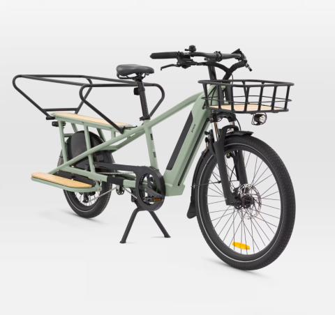 Vélo cargo électrique longtail chargement arrière R500E vert clair BTWIN | Decathlon